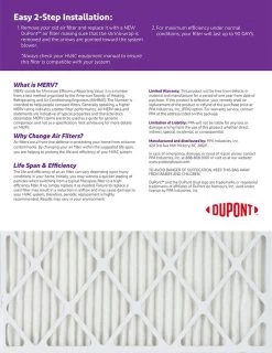- All MERV data and statements are indicative of typical properties and characteristics obtainable. MERV claims are to be used as a guide for general comparison and not as a specification.