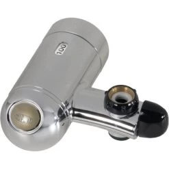 This chrome DUPONT® Premium Faucet Mount Filtration System attaches to Standard Faucets in Seconds. It provides filtered and unfiltered water. One 100 gallon filter cartridge is included and it reduces microbial cysts, cryptosporidium, and giardia. Works with any DUPONT® Faucet Mount Water Filter Cartridge.